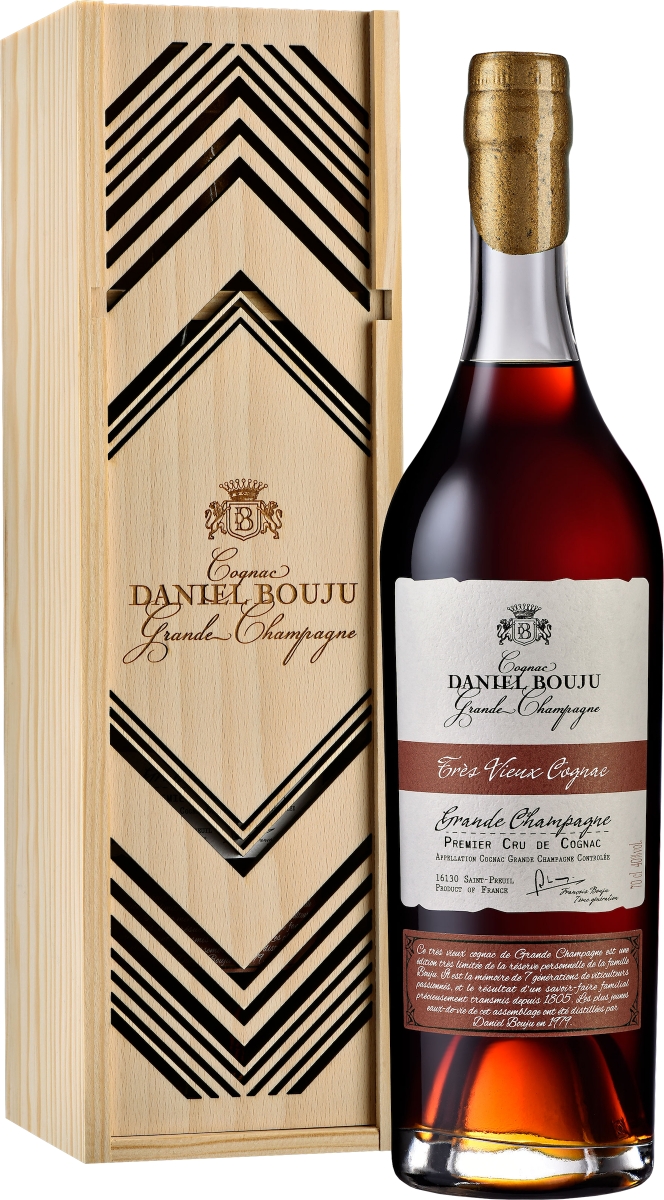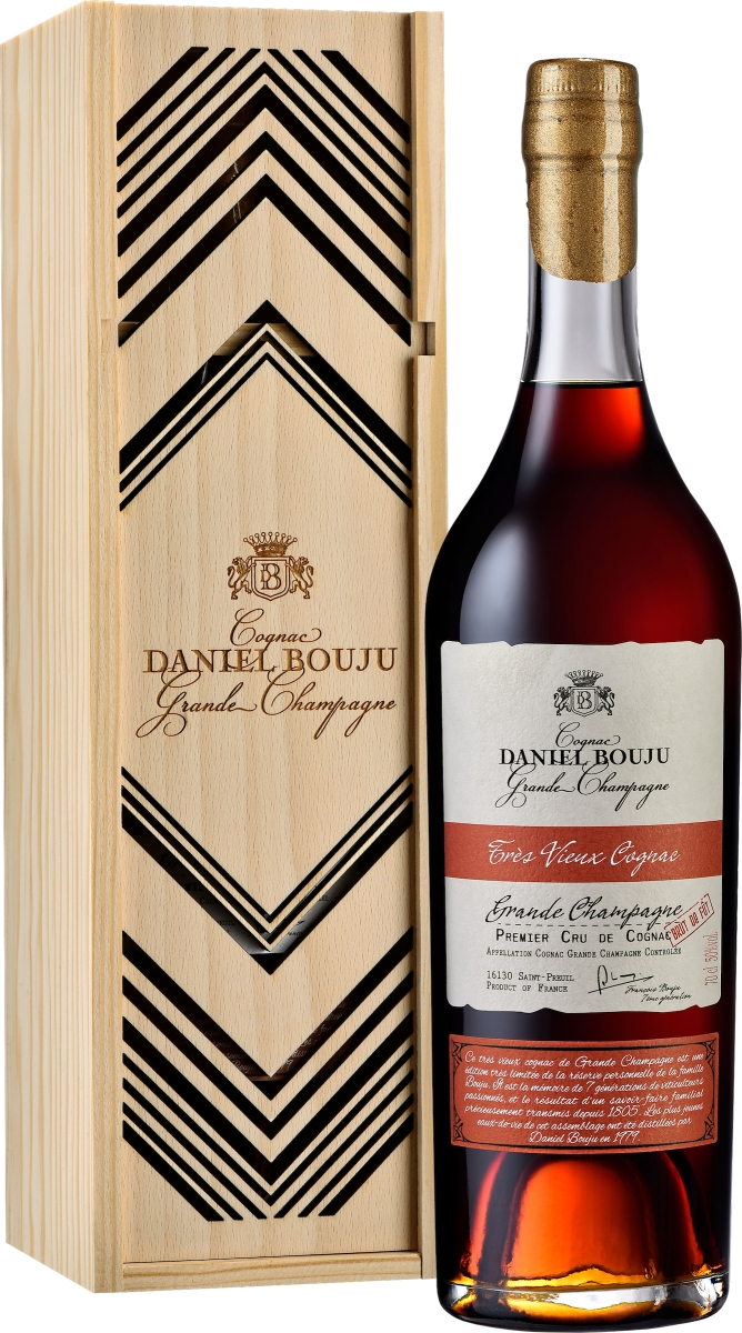 «Daniel Bouju Tres Vieux» – это очень старый коньяк для истинных гурманов, который выдерживается в бочках из Лимозенского дуба не менее 40 лет. Не проходил фильтрацию и не содержит карамель и сахарный сироп.